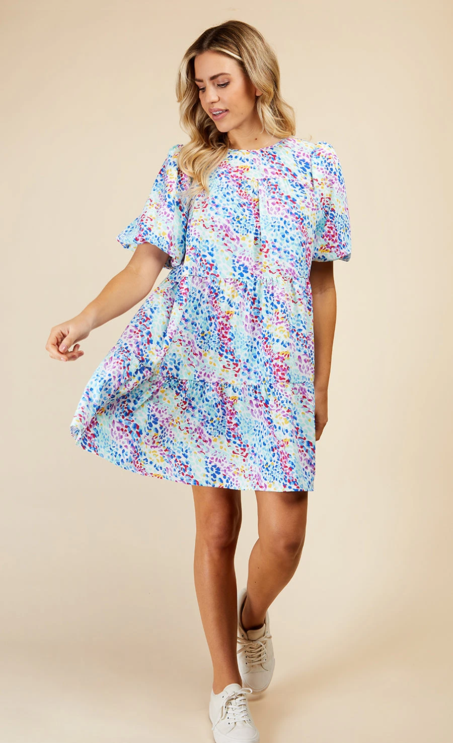 Pretty puff sleeves, technicolour animal print and a super-cute tiered hem – that’s what you call a dopamine dress. With a loose smock silhouette, it’s made to throw on and go. Style with trainers, sandals or strappy heels depending on the occasion.