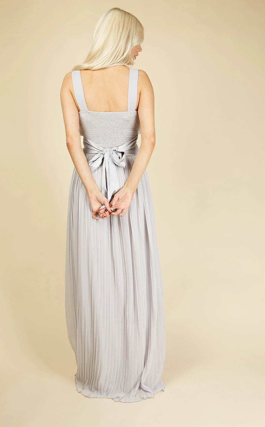 If you’re on the hunt for a timeless and elegant dress then look no further. Our gorgeous soft grey maxi style is made from a delicate chiffon and features a satin sash that ties round the back to create a simple but stunning look.