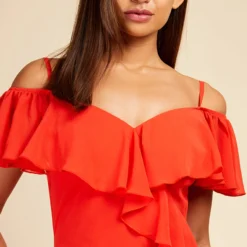 A party season must, the little red dress. Designed in a midaxi length and complete with cross-over tie back detailing, this dress oozes sexy sophistication. Style with a barely there heel and a statement clutch.