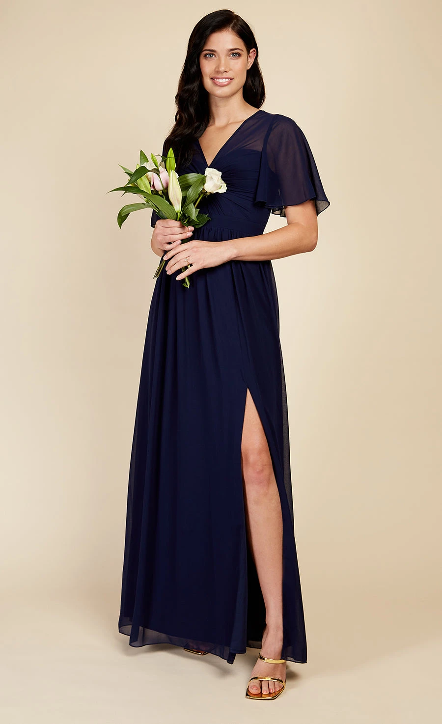 Embrace the romance in this dreamy dress. The knot front detail and nipped-in waist make for the most flattering fit, while the floaty angel sleeves create a gorgeous silhouette. Made from delicate chiffon, it’s finished with a thigh-skimming front split for added glamour.