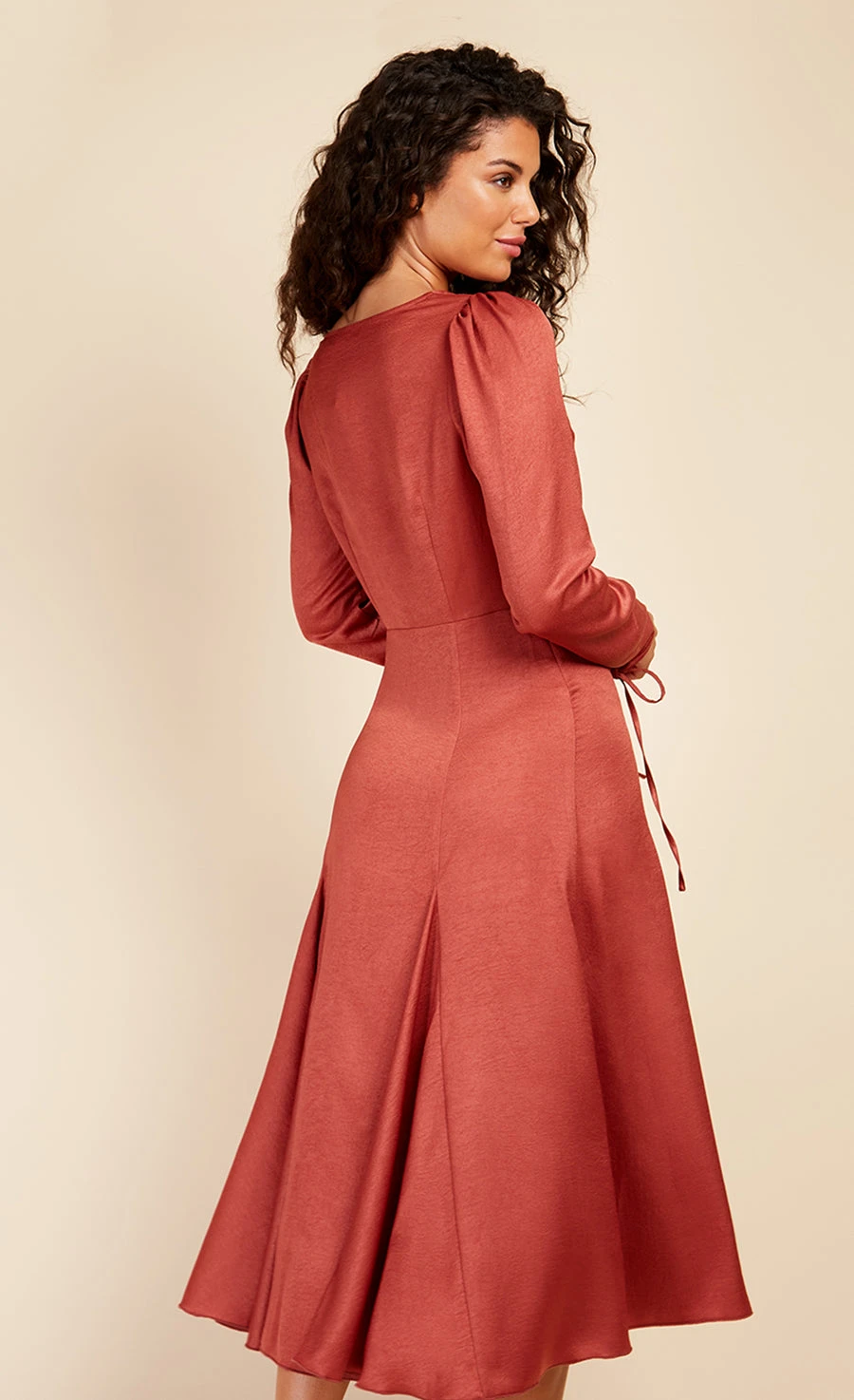 Framed by a cowl neck and falling into a swishy midi hem, this silky stunner is the epitome of sophistication. Perfect for those formal plans, it may be modest, but the curve-skimming cut and waist-accentuating panel show off your figure to perfection. We love it with gold heels.