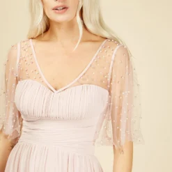 Little Mistress Luanna Blush Embellished One-Shoulder Maxi Dress