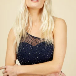 Little Mistress Luanna Navy Embellished One-Shoulder Maxi Dress